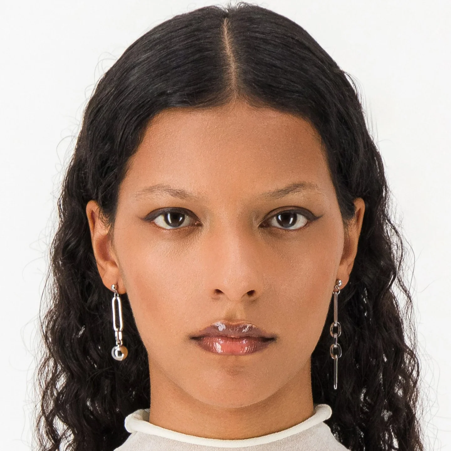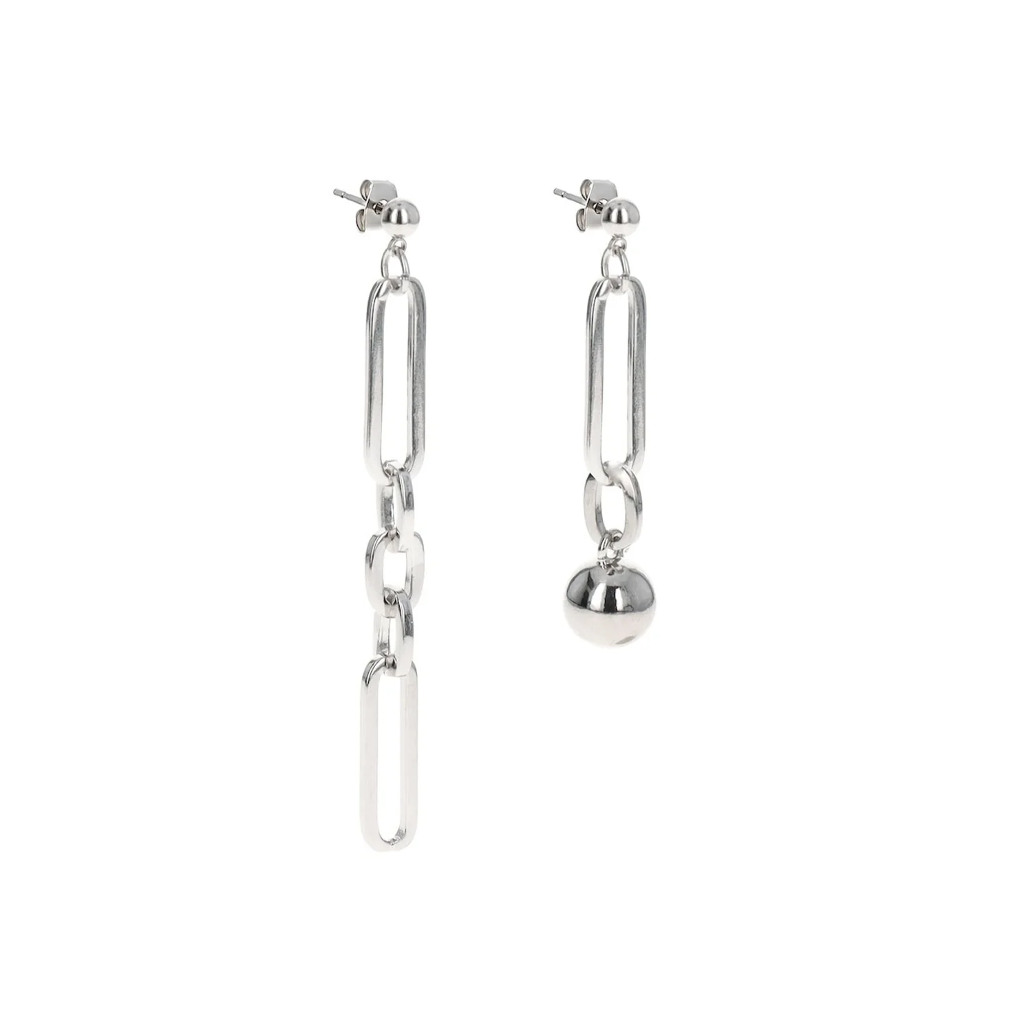 Single oval link with ball bead on one side, two oval links separated by a round link on the other side.