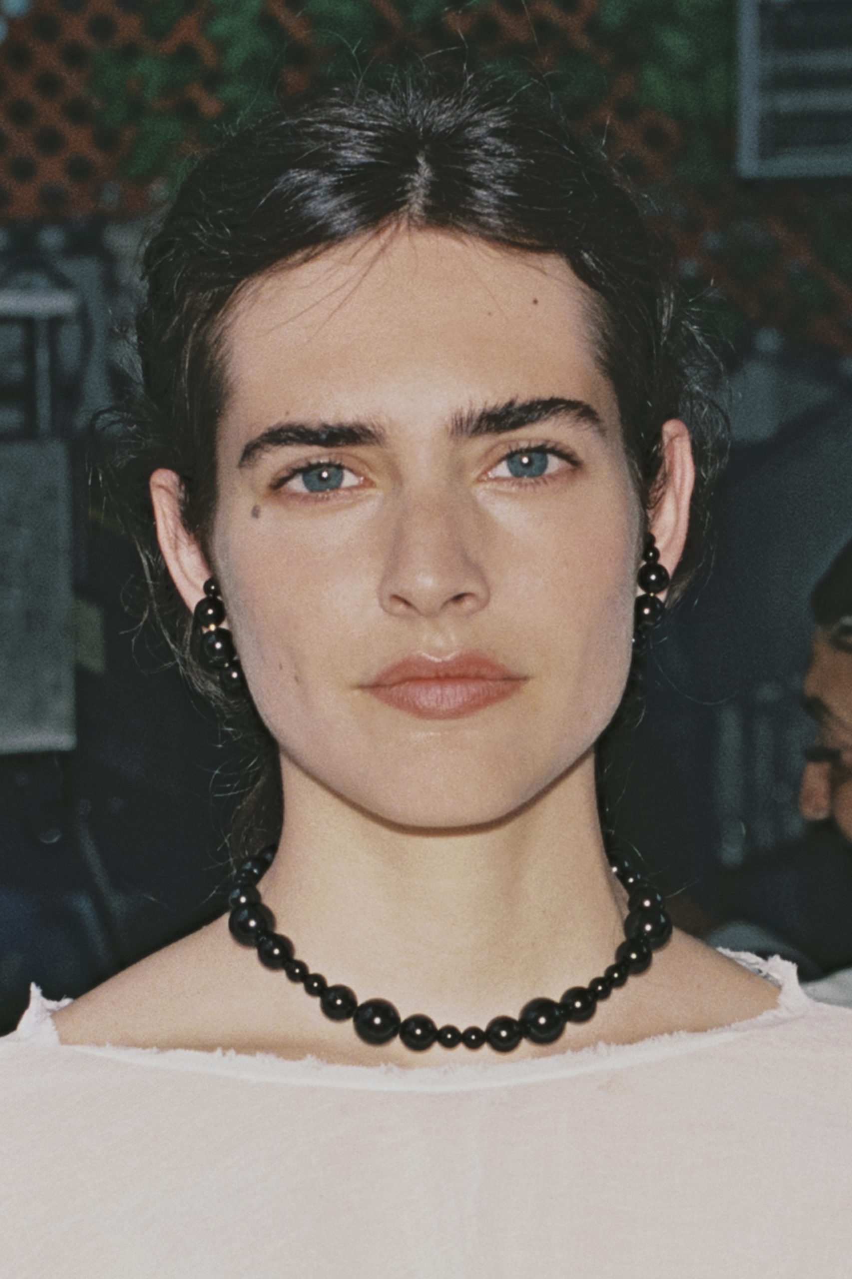 Earrings with onyx beads. in mixed sizes, arranged organically. For pierced ears. Sold as pair.