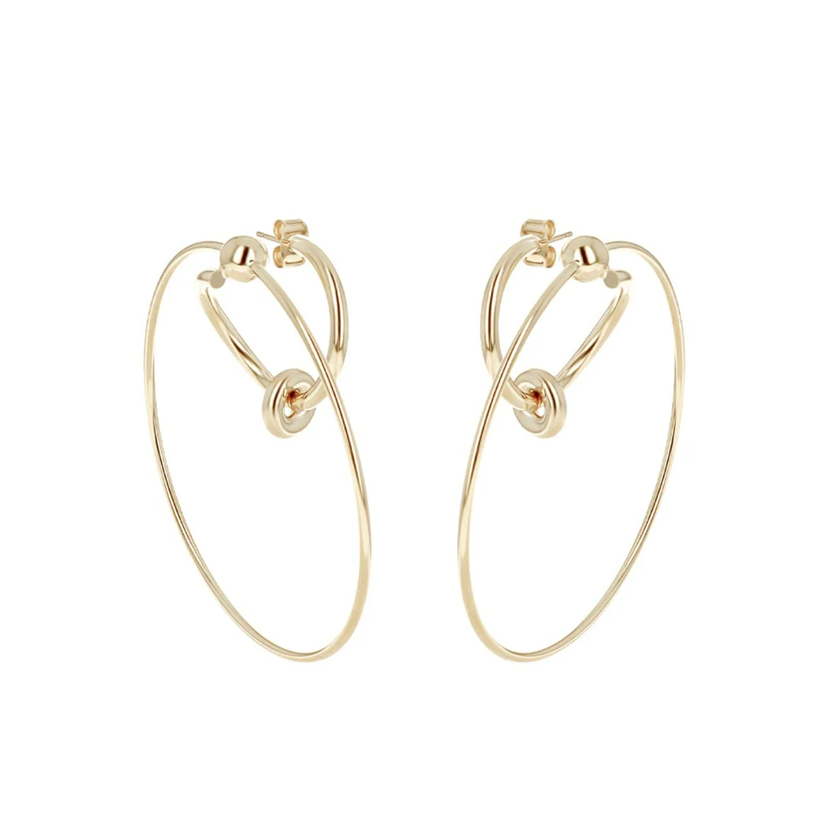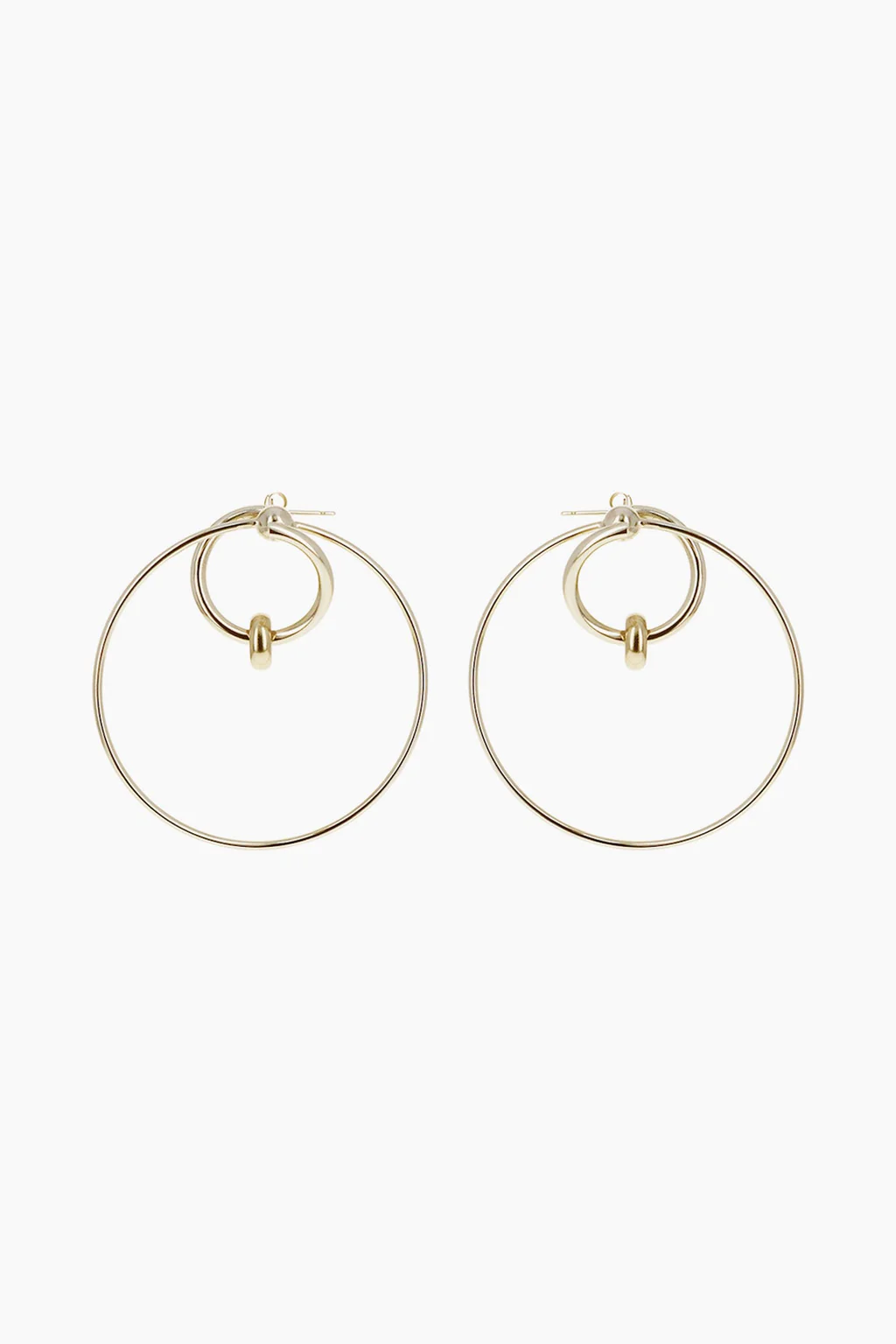 Pale gold thin round hoop earrings.