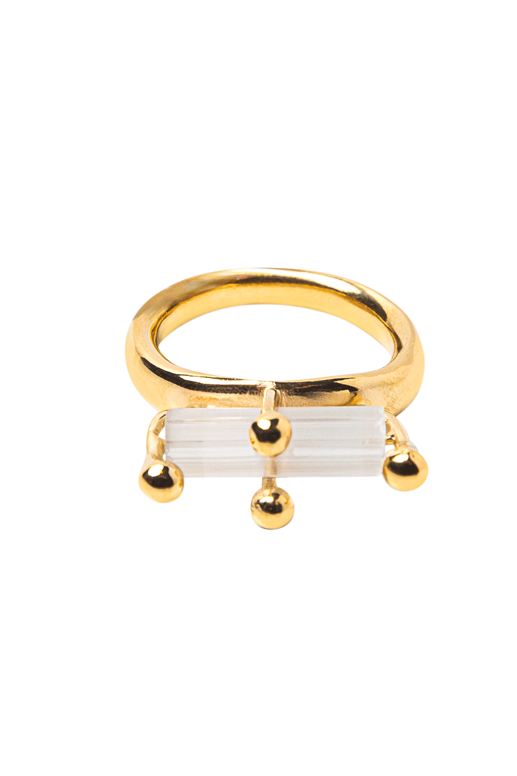 This ring is made from gold-plated sterling silver, featuring an antique crystal in a secure prong setting. The crystals used in this design are antique pieces. Due to their limited availability, this edition is offered in small quantities.