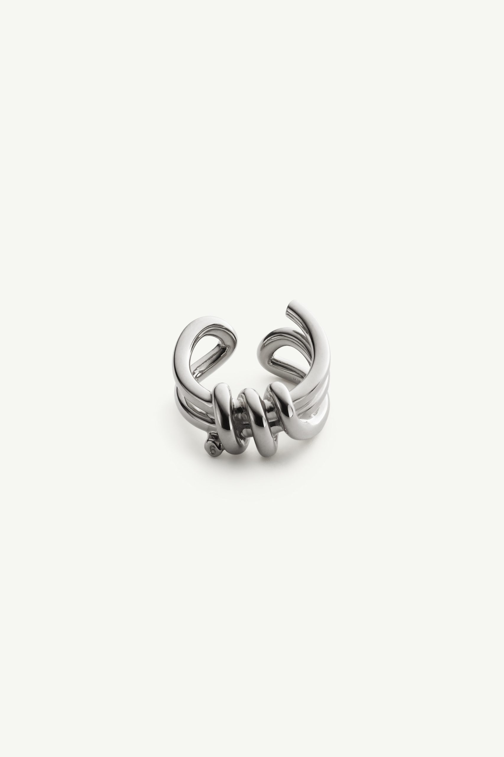 A shoelace reimagined as sculpture. The Knotted Ring translates the everyday tie into a polished gold-tone band, reshaped into loops that echo the gesture of fastening.
