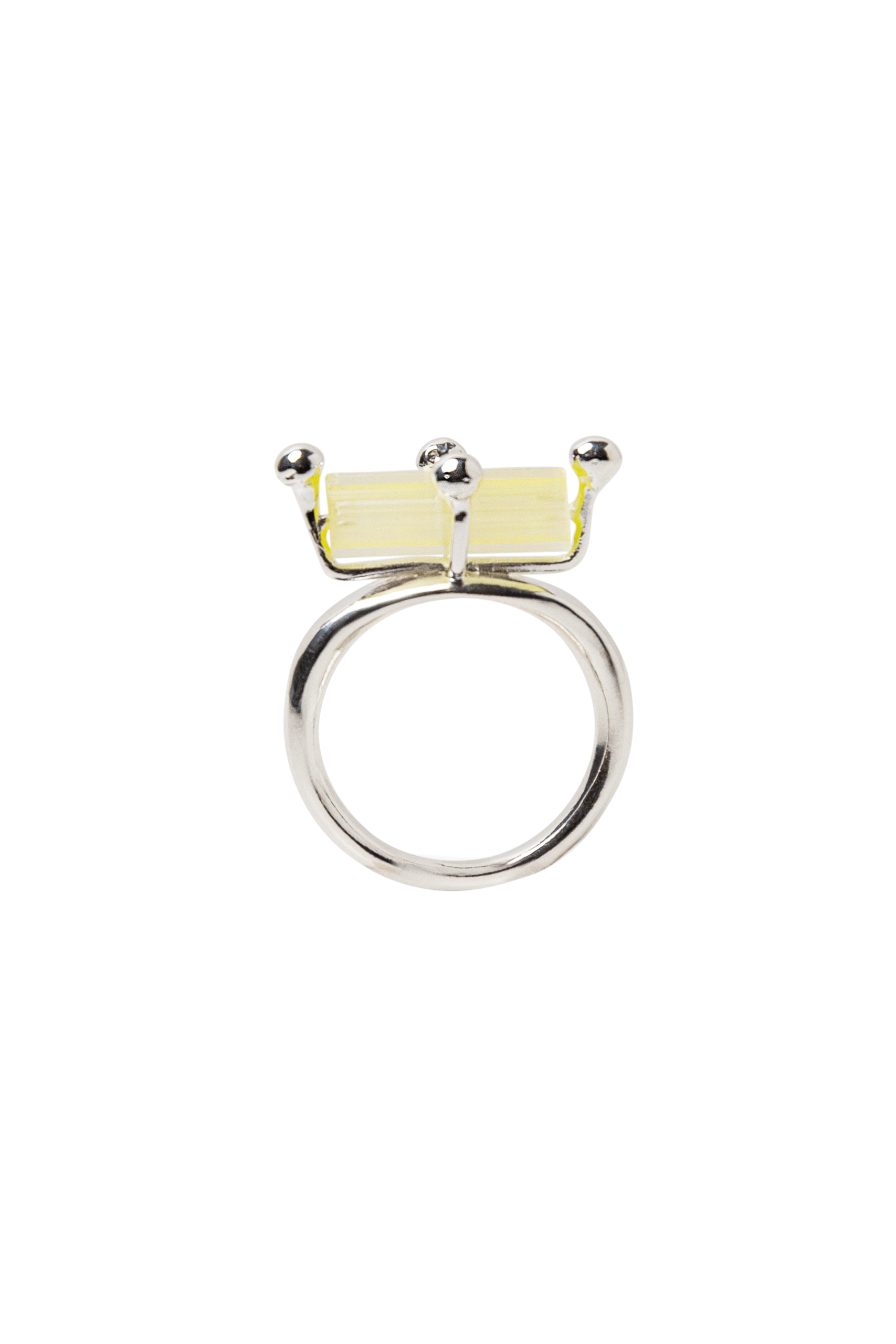 This ring is made from sterling silver, featuring an antique crystal in a secure prong setting. The crystals used in this design are antique pieces. Due to their limited availability, this edition is offered in small quantities.