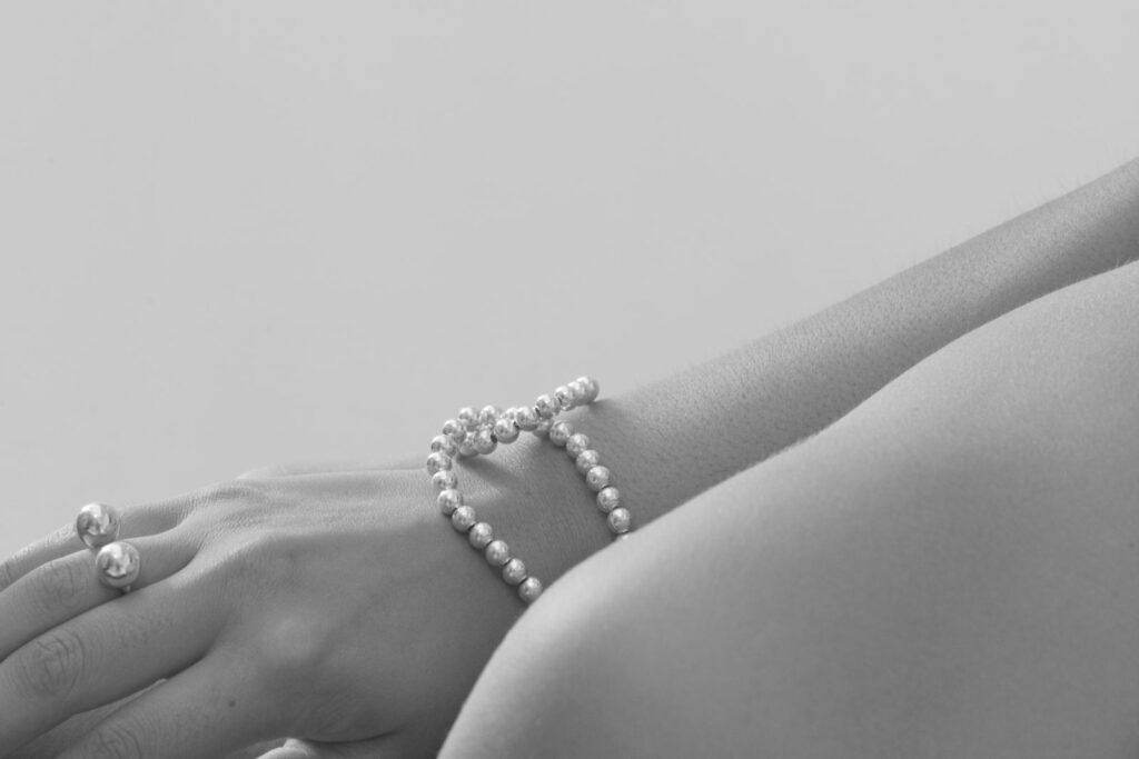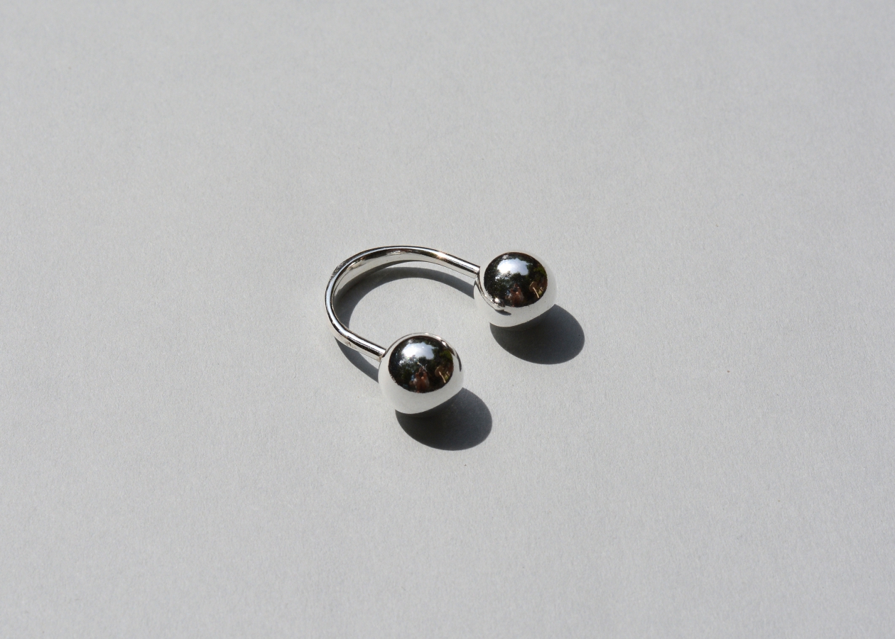 The SLING ring No1 has two spheres. While wearing it you see nothing but them. The ring itself is open, so a bit adjustable. Made in Munich from recycled sterling silver.